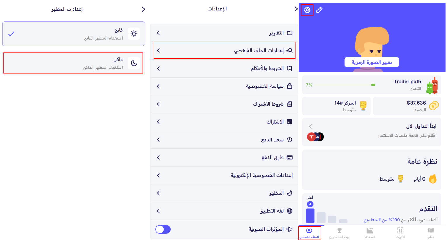 نعم، يمكنك بسهولة التبديل إلى الوضع الداكن في تطبيق Finelo! إليك الطريقة: