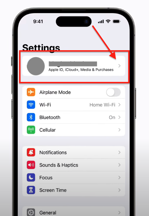 1. Go to the iPhone's Settings ⚙️2. Tap on Your name at the top of the screen