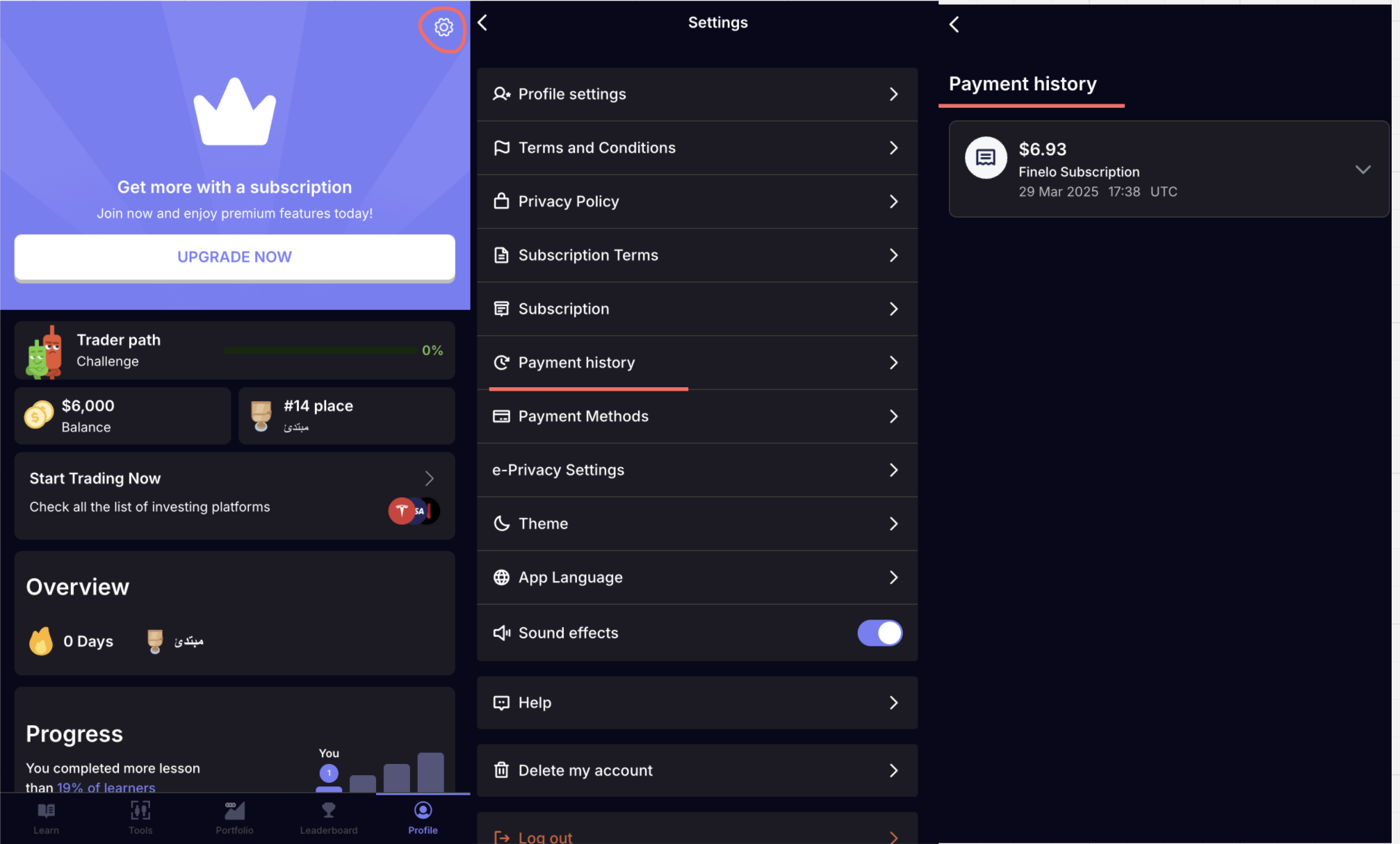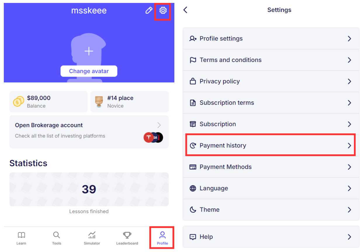 If you subscribed through the web version, you can easily access your invoices in Finelo Profile → Settings → Payment History.