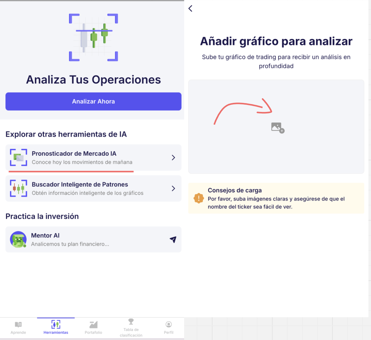 Nota: El Analizador de Gráficos con IA proporciona información solo con fines informativos. Combínalo siempre con tus propias estrategias de investigación y gestión de riesgos.