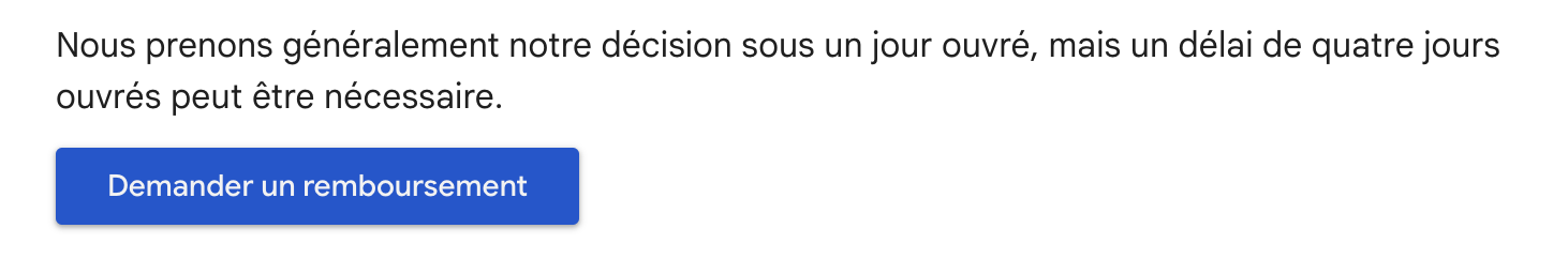 - Accédez à « Achats et remboursements » -> « Démarrer une demande de remboursement » -> « Demander un remboursement ».